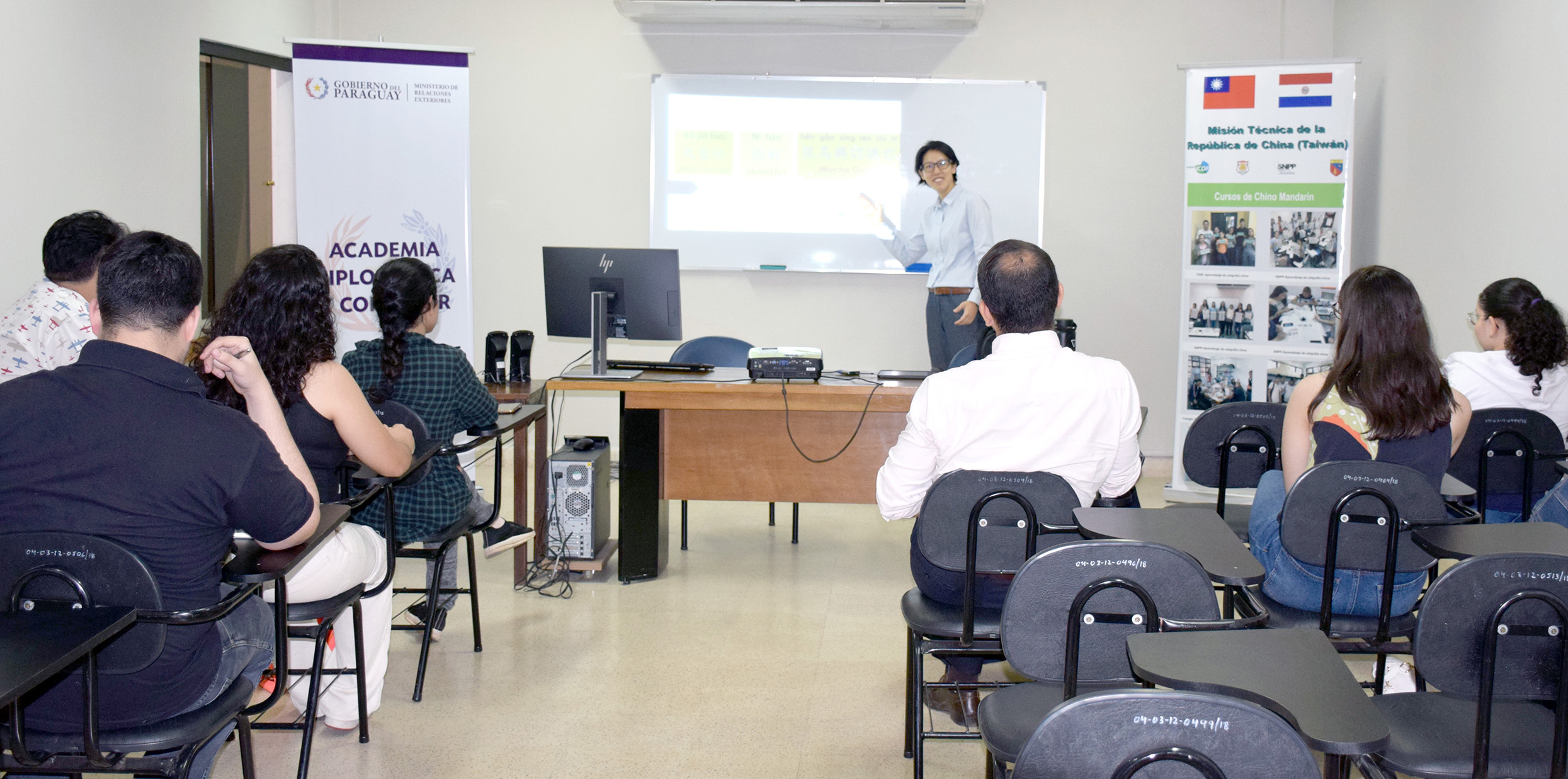 En cuanto a las clases del idioma chino mandarín, el curso de carácter anual es auspiciado por la embajada de la República de China (Taiwán) desde 2016 y cuenta con profesores especializados nativos de ese idioma y miembros de la cooperación técnica taiwanesa. La docente actual es la profesora Ellen Jen, quien, paralelamente a las enseñanzas del idioma, desarrolla actividades artísticas de extensión con sus alumnos para celebrar festividades tanto de Taiwán como del Paraguay. Las clases de chino mandarín se desarrollarán durante el presente año para principiantes, en horarios de la mañana, los días martes y jueves, de 10 a 12 horas.
