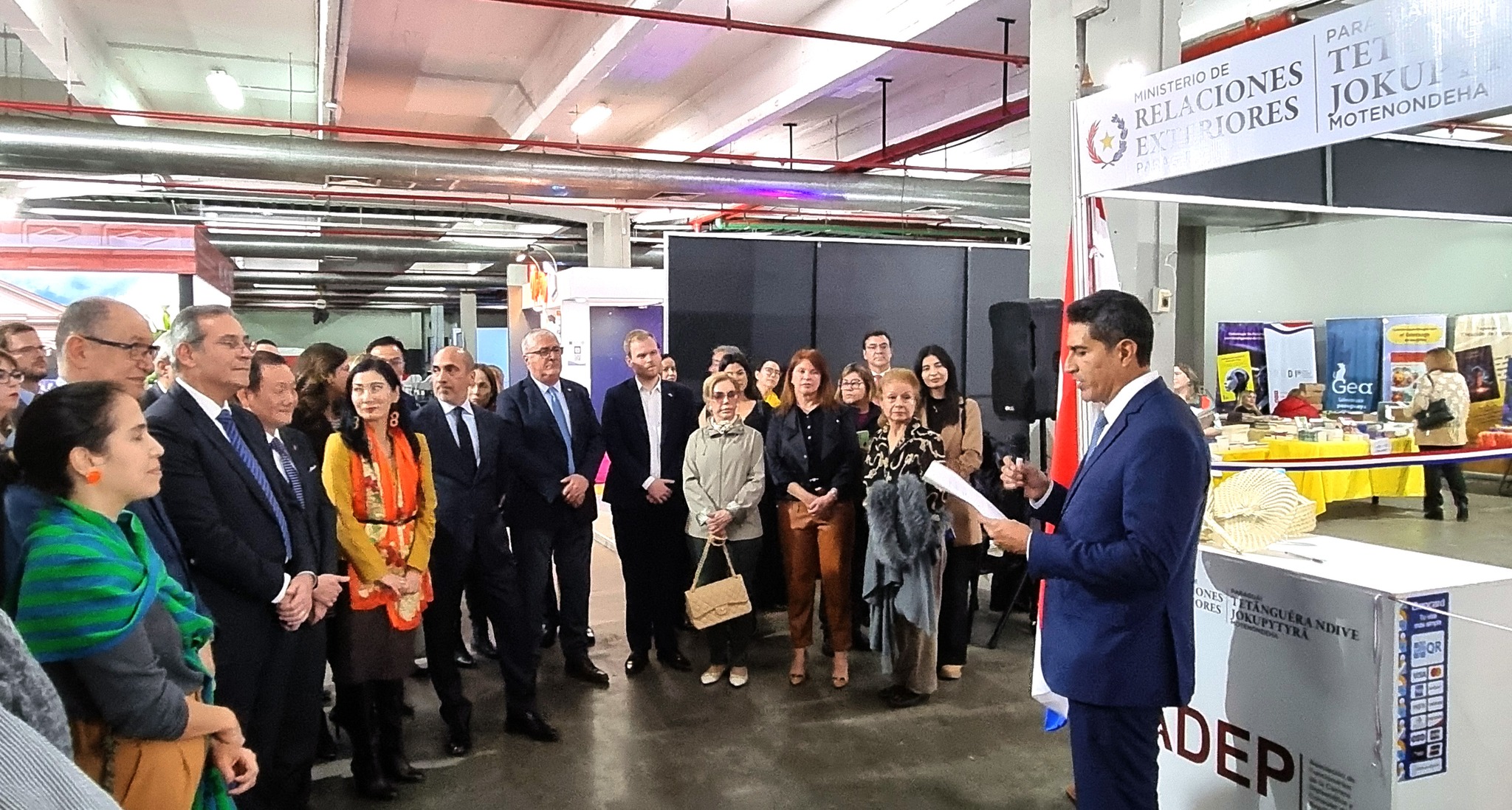 Con la presencia del embajador Víctor Verdún, viceministro de Relaciones Exteriores, y de varios exponentes del Cuerpo Diplomático y representantes de organismos internacionales acreditados en el país, así como de la Feria Internacional del Libro (FIL) e invitados espaciales, se inauguró oficialmente el stand, del que, en forma conjunta, el Ministerio de Relaciones Exteriores y la Asociación de Funcionarios de la Carrera Diplomática y Consular - ADEP, participan en la presente edición de la FIL Asunción 2024.