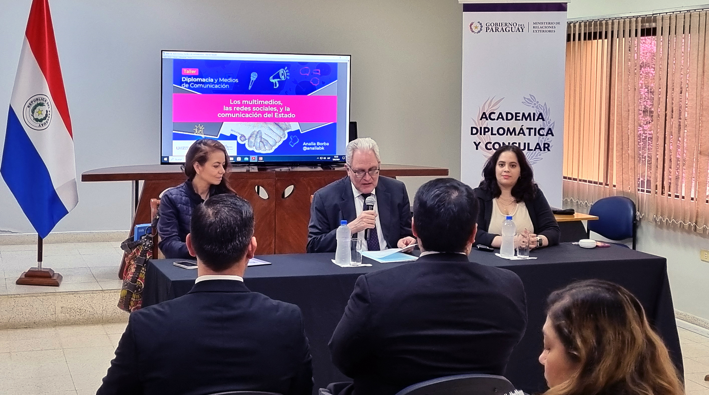 Se dio inicio ayer al Taller “Diplomacia y Medios de Comunicación”, dirigido exclusivamente a alumnos de la Academia Diplomática y Consular y a funcionarios de la Cancillería Nacional con el apoyo del Ministerio de Tecnología y Comunicación (MITIC).