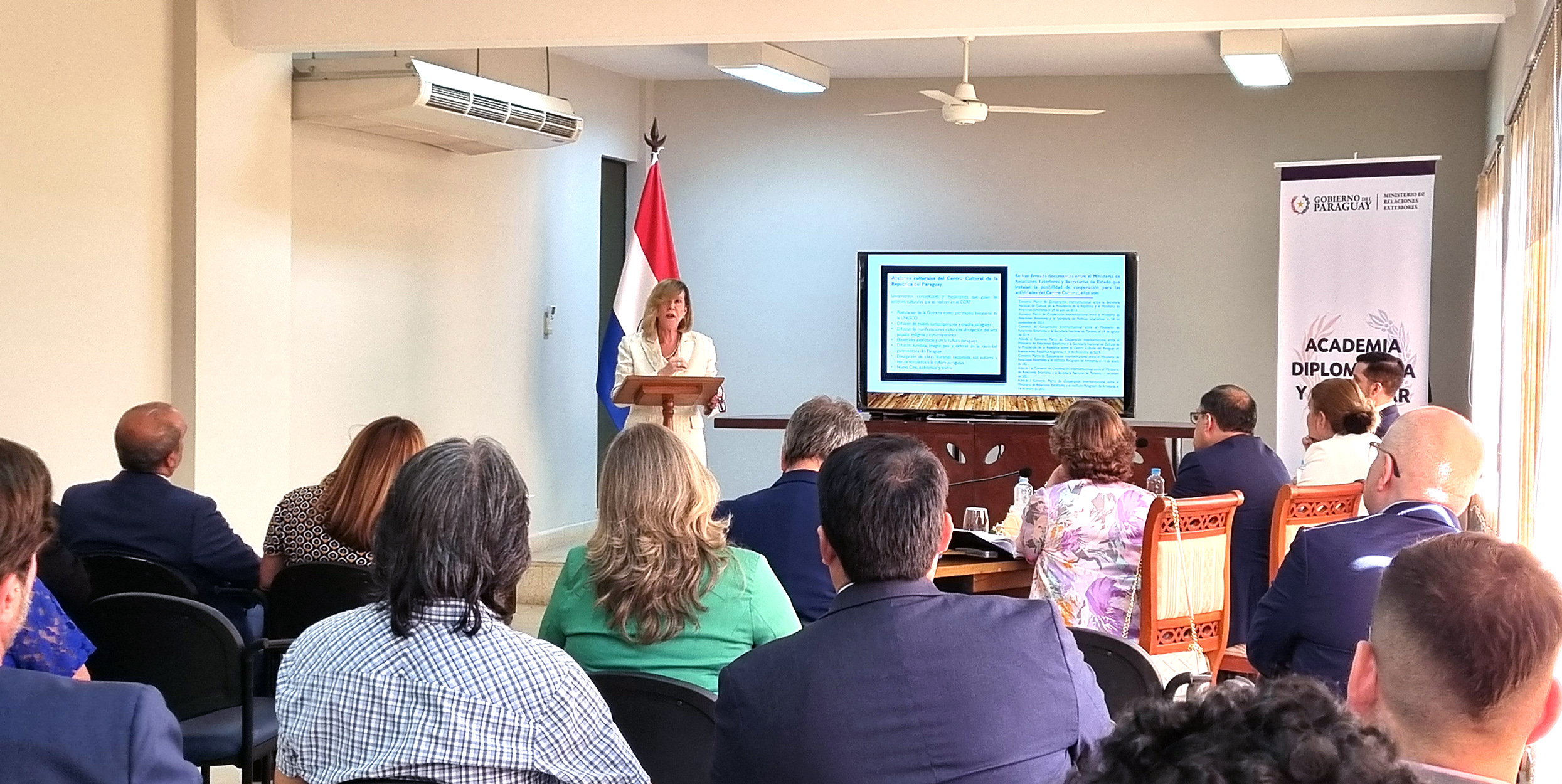 Se realizó en el Aula Magna de la Academia Diplomática y Consular el acto de defensa oral del trabajo de investigación denominado: “Aporte de las acciones realizadas en el Centro Cultural de la República del Paraguay en Argentina a la imagen país en el área de la cultura”, presentado por la ministra Lourdes Espínola Wiezell.