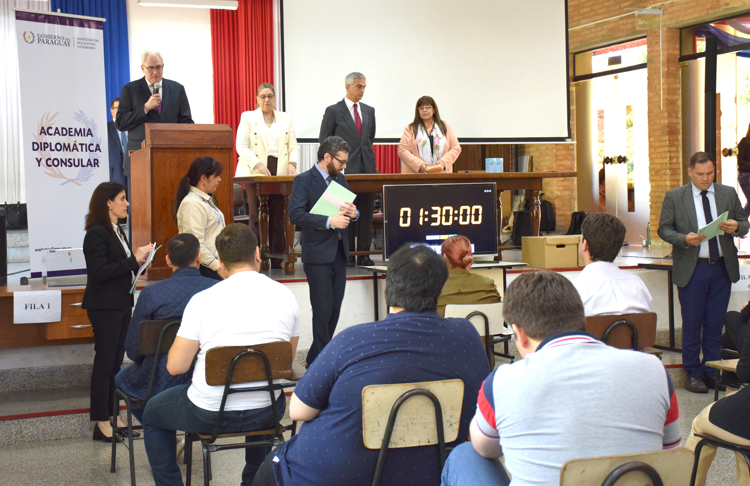 Como en ocasiones anteriores, la prueba se inició con la presencia del director general de la Academia Diplomática y Consular, embajador Ricardo Scavone, quien explicó los procedimientos de la evaluación, así como el tiempo establecido para la misma. La preparación y desarrollo del examen estuvo verificada por la escribana Teresita Denis Filippini.
