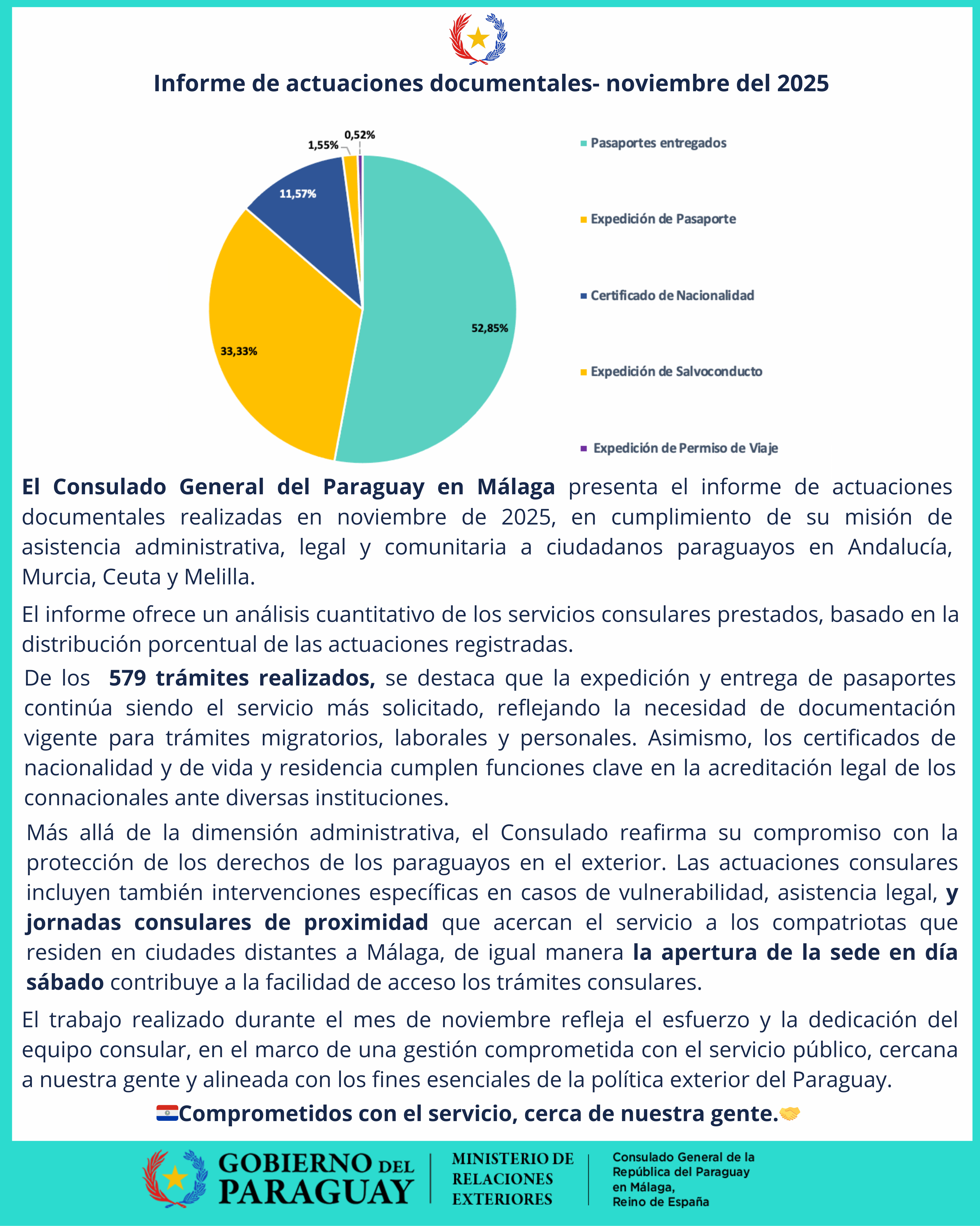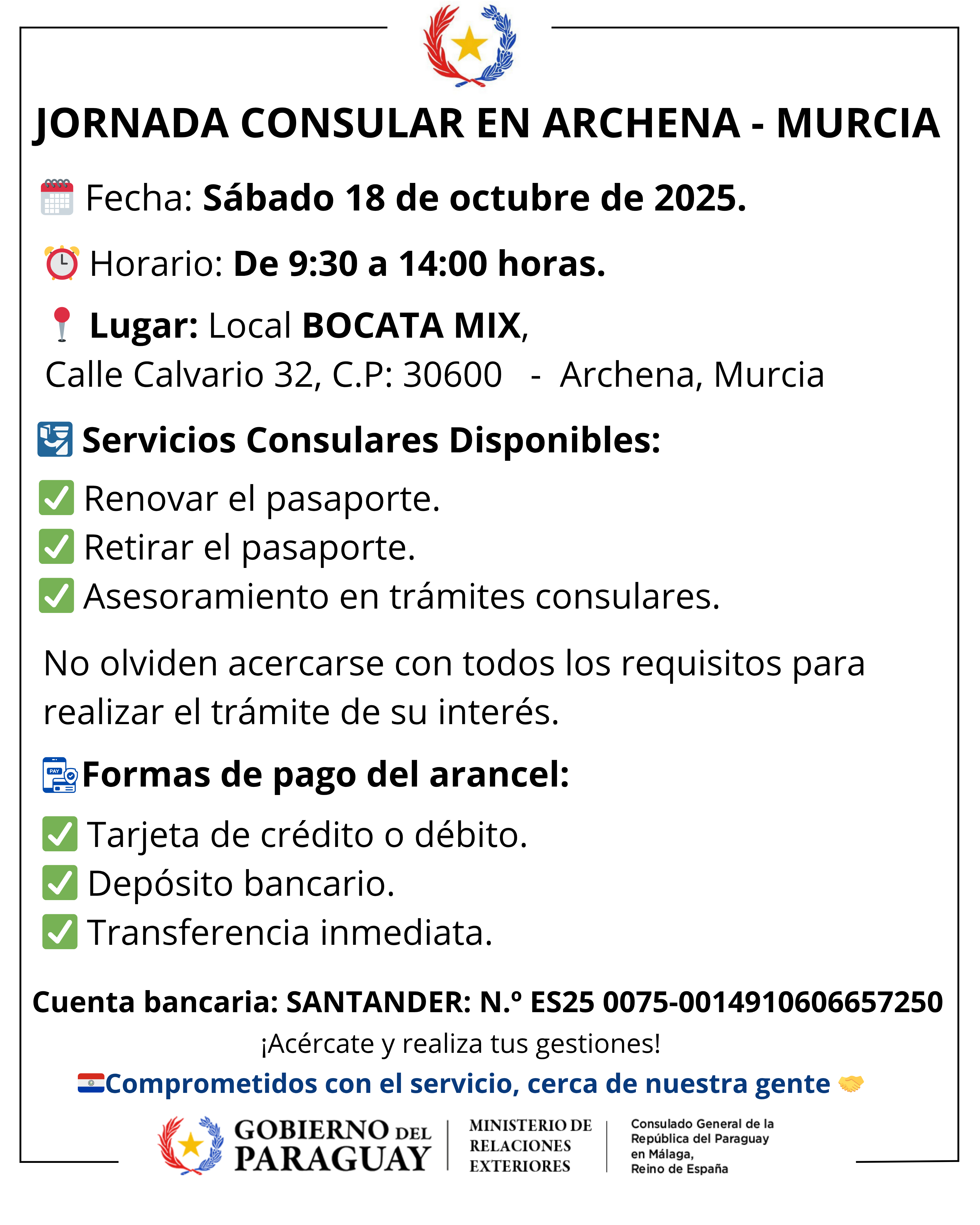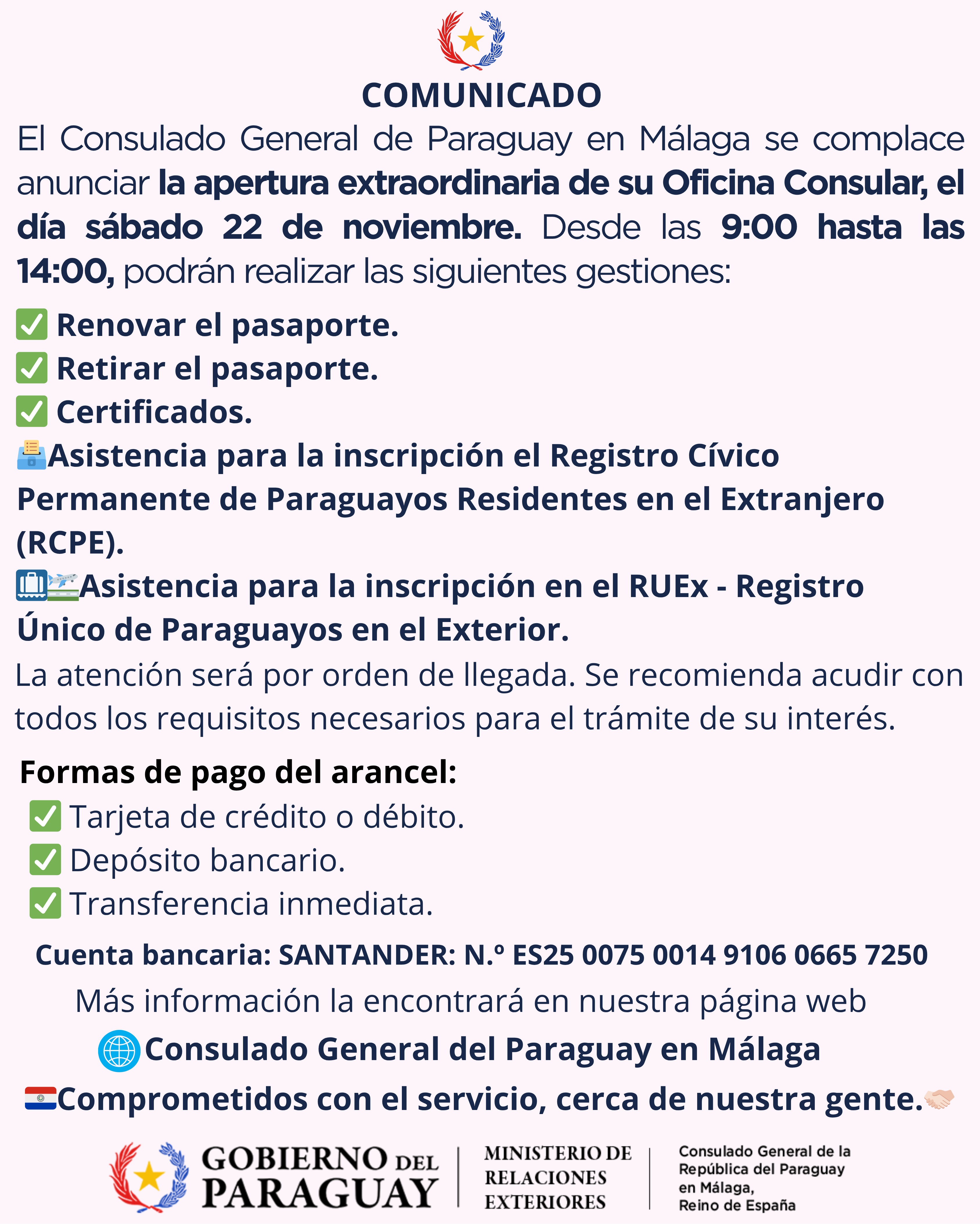 En cumplimiento del calendario institucional, el Consulado General del Paraguay en Málaga llevó a cabo con éxito una nueva jornada extraordinaria de atención consular.