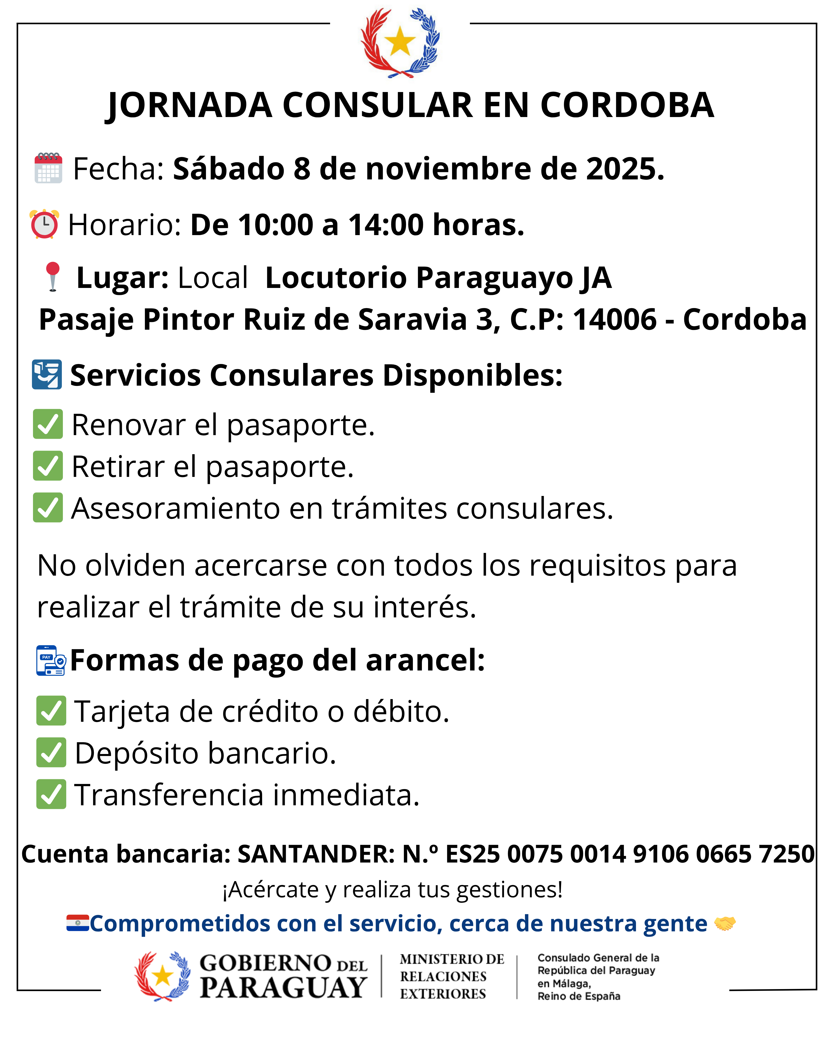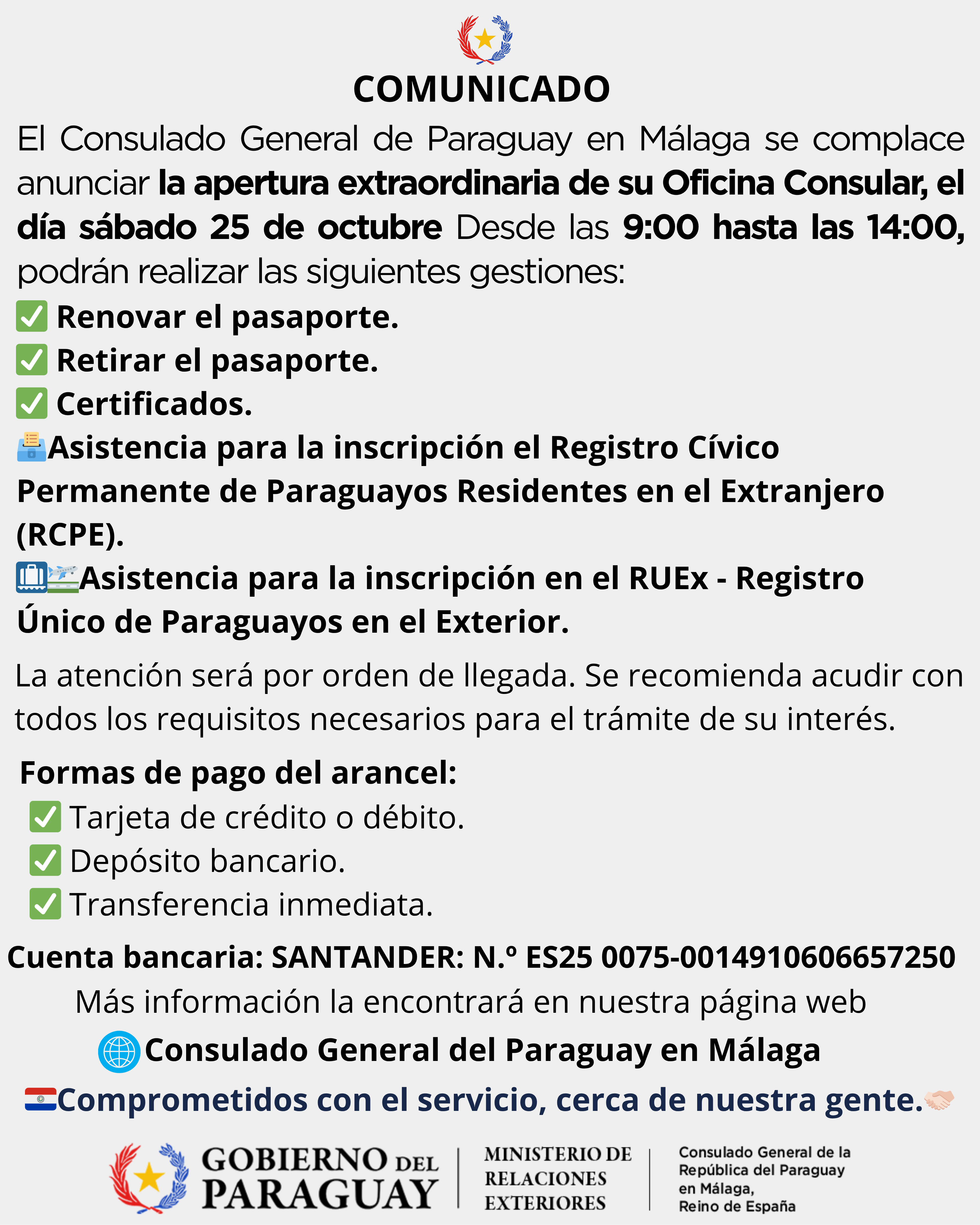 Ver másEl pasado 12 de julio del corriente, el Consulado General del Paraguay en Málaga abrió sus puertas en una jornada especial de atención al público.