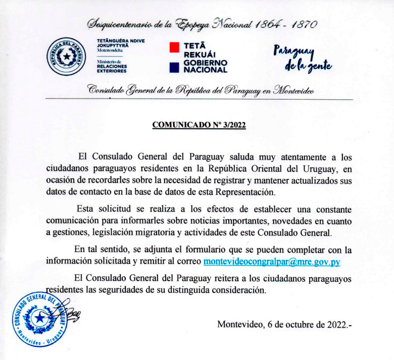 Comunicado N° 3 Consulado del Paraguay en Montevideo
