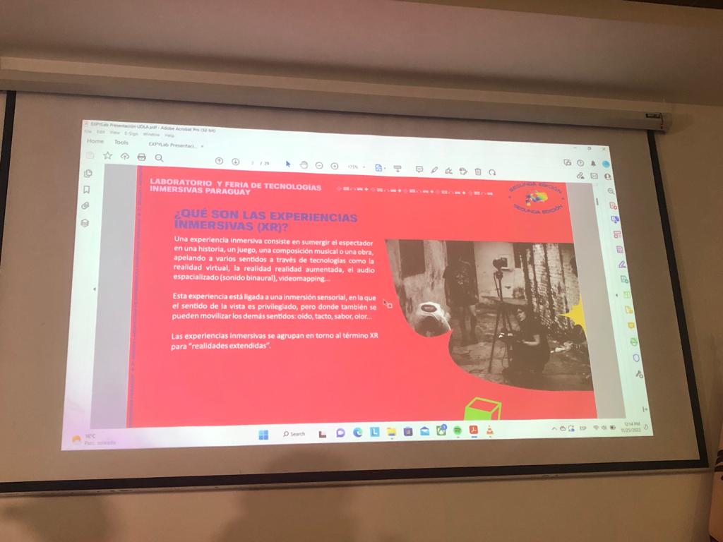En la Charla “Panorama de la creación XR en Paraguay”, el Sr. Merens (productor de OPUS VR y creador del EXPYLAB) habló sobre el Laboratorio de Experiencias Inmersivas y el panorama de la creación XR en Paraguay.