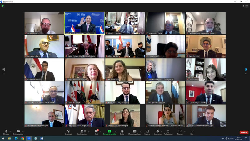 El Gobierno Nacional culmina el 2022 con una importante proyección internacional, posicionando la imagen del Paraguay a nivel bilateral, regional y multilateral, y como un destino seguro para las inversiones y el desarrollo de negocios, sostuvo el ministro de Relaciones Exteriores, embajador Julio César Arriola, en un mensaje dirigido esta mañana a los embajadores, jefes de misiones diplomáticas, cónsules generales y cónsules de la República del Paraguay distribuidos por el mundo.