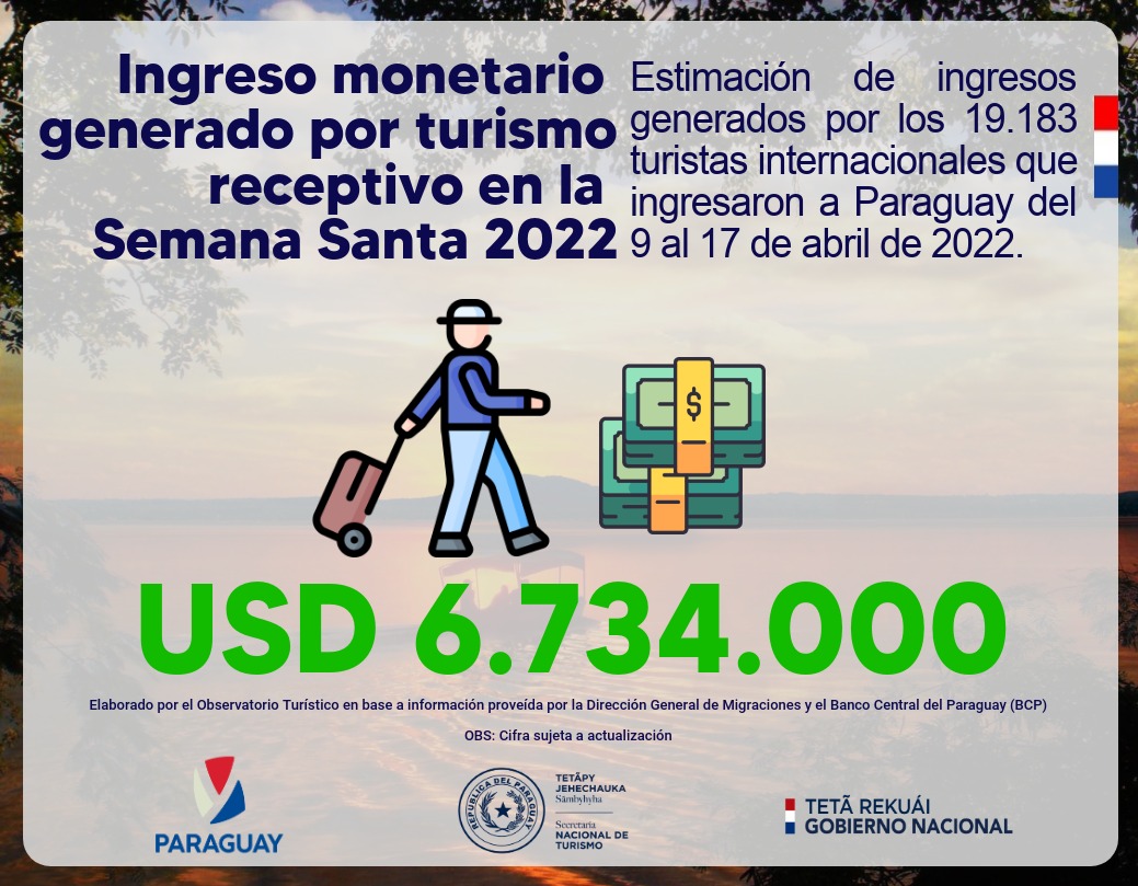 Paraguay registró la llegada de 19.183 turistas extranjeros en la Semana Santa, Este flujo de visitantes del exterior significó un ingreso de más de USD 6.700.000 dólares para el país.