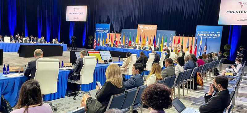 El canciller nacional, embajador Julio César Arriola, intervino en la fecha en la reunión de cancilleres del Grupo de Revisión de la Implementación de Cumbres (GRIC), en el marco de la IX Cumbre de las Américas que se realiza en Los Angeles, Estados Unidos.