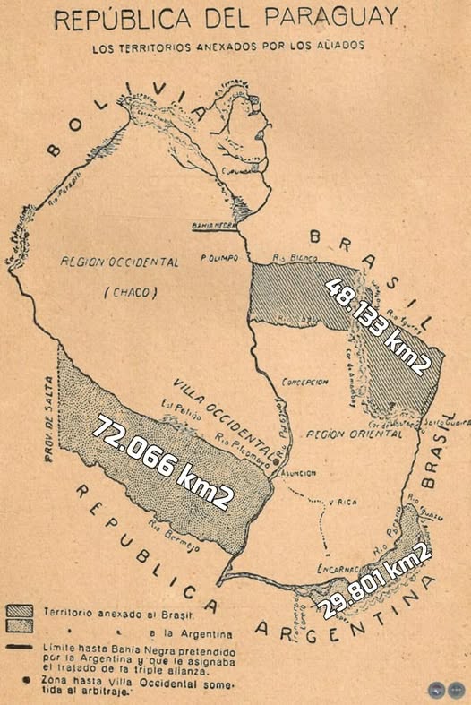 Las pérdidas territoriales del Paraguay como consecuencia de la Guerra de la Triple Alianza sumaron unos 150.000 Km2.