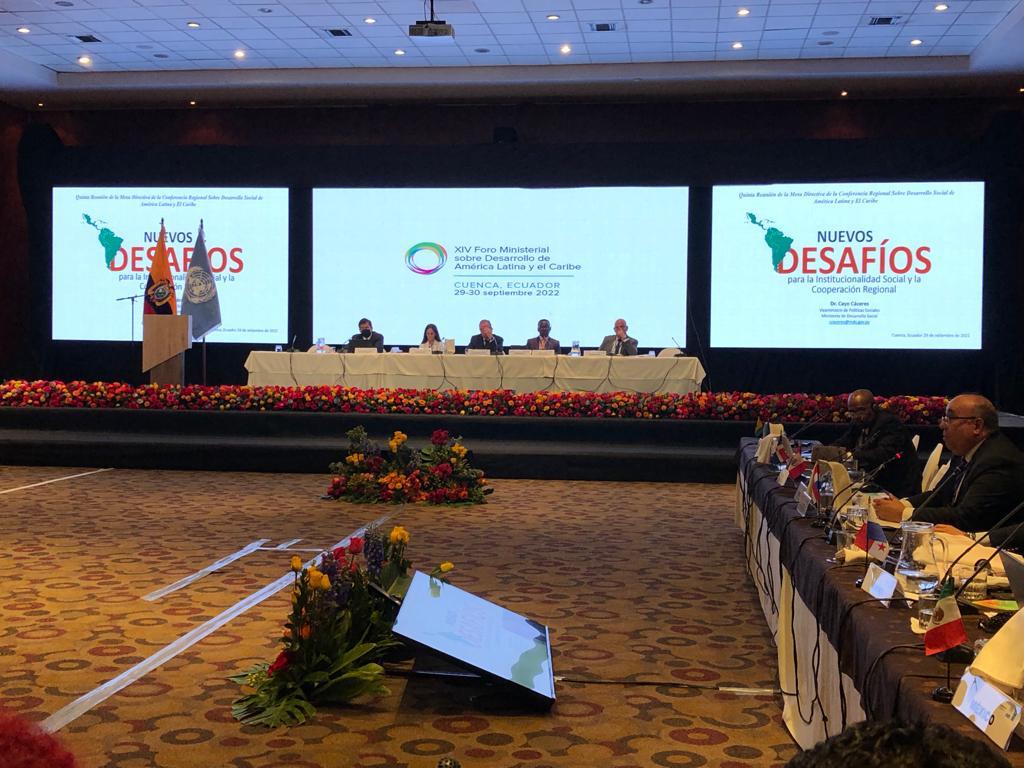 El viceministro de Políticas Sociales de Ministerio de Desarrollo Social (MDS), Cayo Cáceres participó de la Quinta Reunión de la Mesa Directiva de la Conferencia Regional Sobre Desarrollo Social De América Latina y El Caribe, donde expuso sobre los “Nuevos Desafíos para la Institucionalidad Social y la Cooperación Regional”.