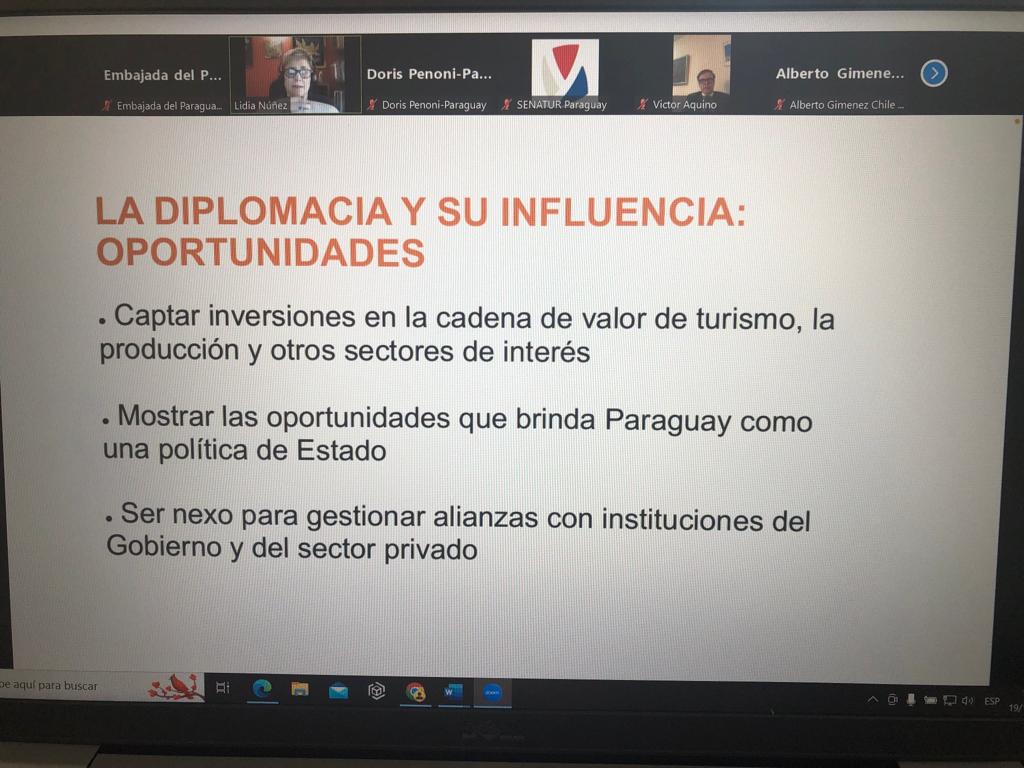 La Embajada del Paraguay en Ecuador participó en el Webinar: Posicionamiento de Paraguay como destino para el turismo de reuniones, organizado por la Dirección de Relaciones Culturales y Turismo y la Secretaría Nacional de Turismo (SENATUR), a través de la Plataforma Zoom.