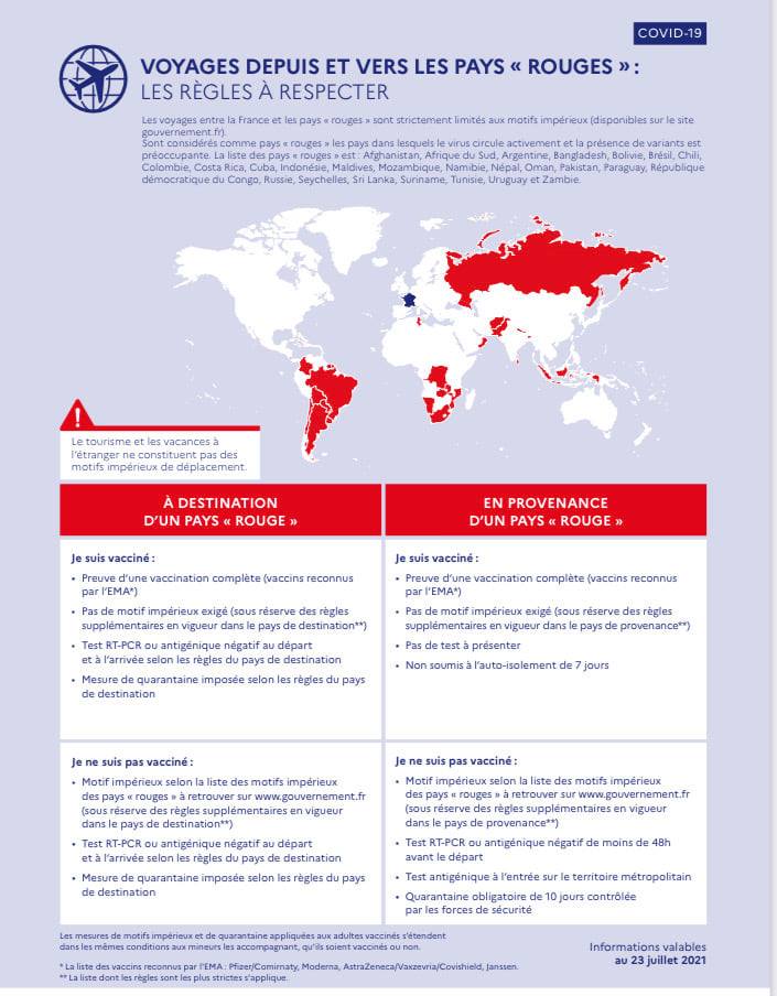 En tal sentido, el Gobierno francés dispuso el pasado 23 de julio, las siguientes medidas a ser aplicadas al ingreso de connacionales al territorio de este país: