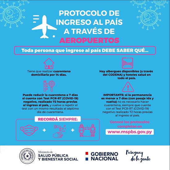 Protocolo sanitario para el ingreso al #Paraguay a través del Aeropuerto Internacional Silvio Pettirossi.